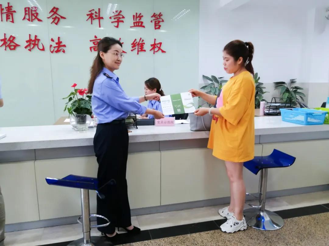 座谈会后,雨花台生态环境局周祖祥副局长与市场局谭俊副局长到区市场局西善桥分局审批大厅开展了餐饮新、改、扩项目环保事先告知服务。