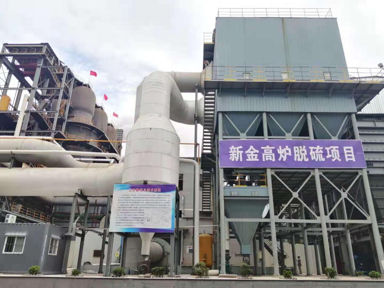 据悉,为尽快推进高炉脱硫治理工作,新金钢铁领导层多次出差对煤气精脱硫和煤气末端用户脱硫治理工艺进行考察,并组织技术研究。经多方论证,新金钢铁最终决定选取稳定性高、治理工艺成熟可靠的“SDS干法脱硫+高效覆膜布袋除尘”脱硫末端治理方案。制定了4座高炉建设4套脱硫设备的目标。该工艺可实现从换热器出来的烟气进入烟道内,在喷入脱硫剂超细粉(主要成分是碳酸氢钠)后,分解出高活性碳酸钠和二氧化碳,通过与烟气中的SO2及其他酸性介质充分接触,发生化学反应,酸性介质被吸收净化。脱硫后的粉状颗粒产物随气流进入高效覆膜布袋除尘器进一步除尘,最终,除尘后的净烟气中粉尘排放浓度<6㎎/Nm3,SO2 <30㎎/Nm3。满足河北省DB 13/ 2169—2018《钢铁工业大气污染物超低排放标准》中高炉热风炉颗粒物、二氧化硫、氮氧化物分别不高于10㎎/Nm3、50㎎/Nm3、150㎎/Nm3的要求。