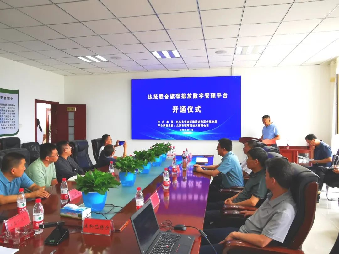 2022年8月8日,达茂联合旗碳排放数字管理平台开通仪式在包头市生态环境局达茂联合旗分局举行。达茂联合旗人大常委会副主任布仁、政府副旗长孟和巴特尔、政协副主席武存保,平台承建单位北京和碳环境技术有限公司总经理孟早明出席仪式。包头市生态环境局达茂联合旗分局局长苏建军主持仪式。