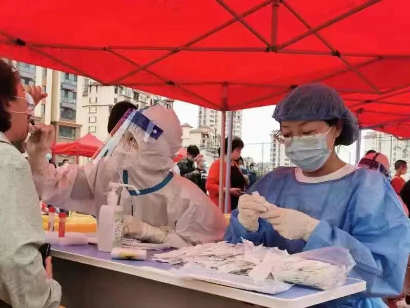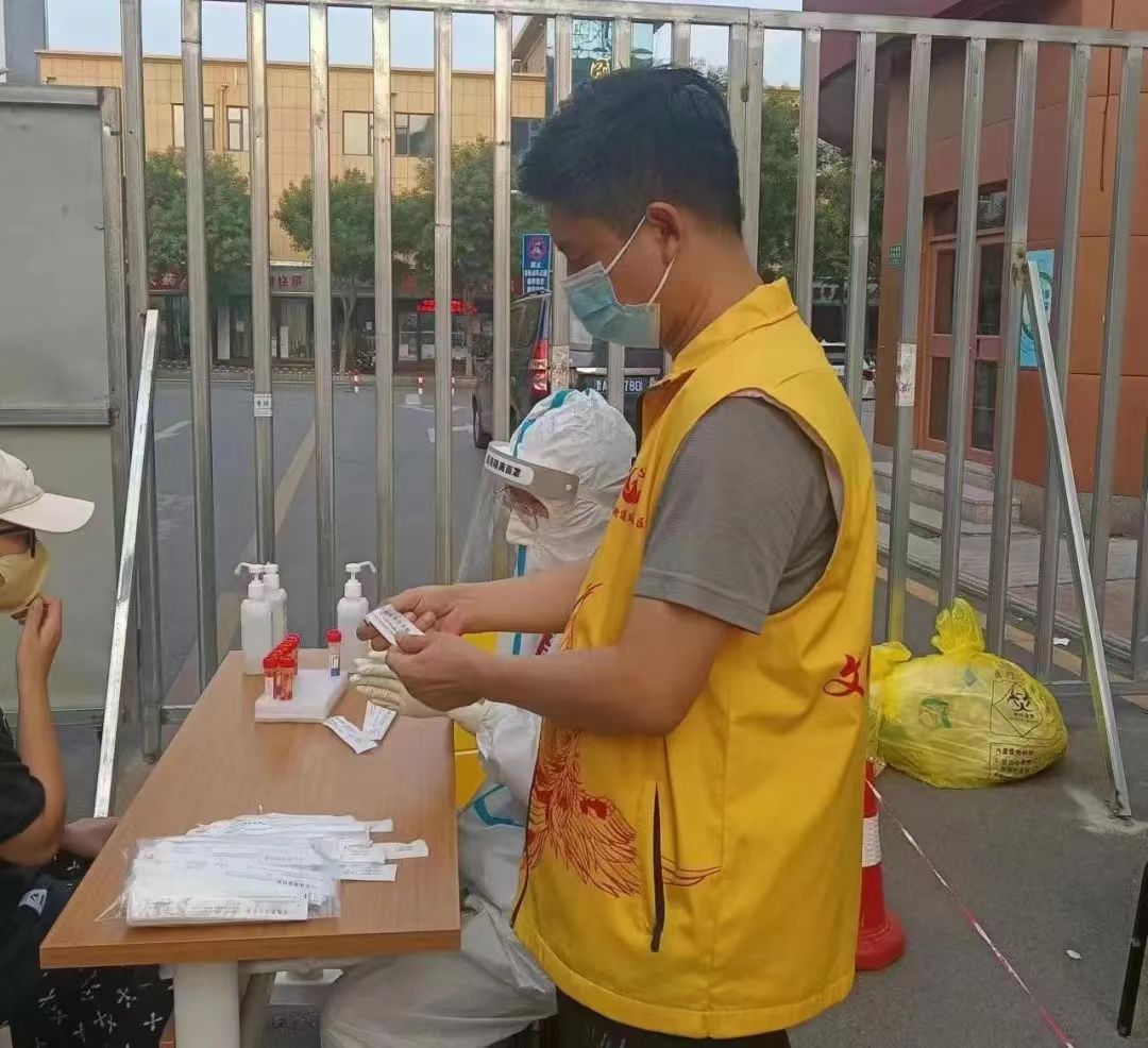 大家协助医护人员做核酸检测,验码、测体温、维持秩序,一丝不苟完成各项工作,在防疫一线坚守初心和使命,尽显特别能吃苦、特别能战斗、特别能奉献的环保铁军的风采,用坚守诠释初心和使命,同心抗疫,必将胜利!