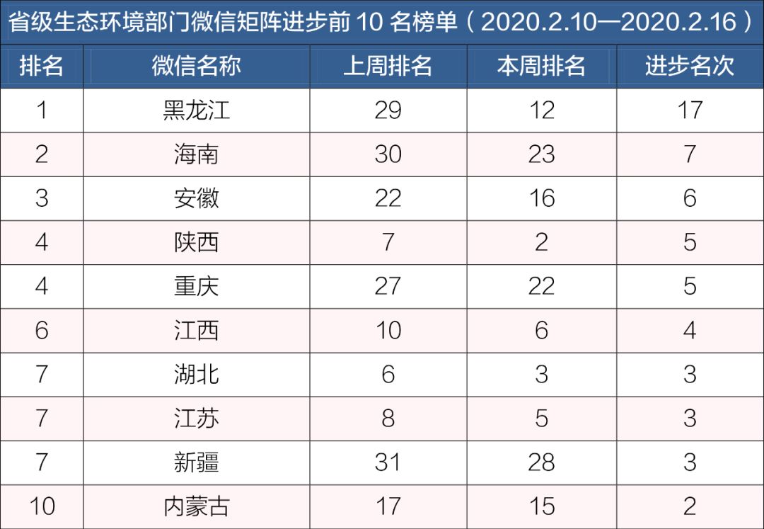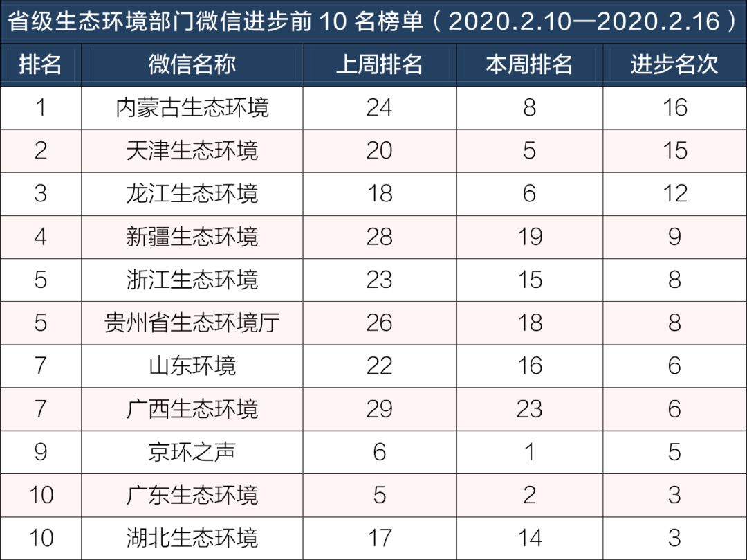 六、省级生态环境部门微信矩阵进步前10名榜单