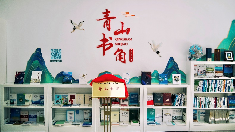 “青山书角”源自习总书记金句“人不负青山,青山定不负人”,首站落户 “绿水青山就是金山银山”理念发源地——安吉余村,现已成为余村文化礼堂的网红打卡地。作为生态文化传播的标志性载体和品牌,书角越来越多地走进环境教育场馆、生态环境系统厅局、大专院校及中小学、设施开放单位等文化空间和阅读区域。按照十百千工程的构想,“青山书角”目前已在浙江、江苏、广西等9个省份进驻,并在联合国气候大会COP28“中国角”上亮相,受到中外读者的喜爱。各地结合“与青山同看、共青山同享、和青山同行”等丰富多彩的文化活动形式,让“青山书角”进机关、进场馆、进学校、进企业、进农村、进社区,成为中国环境出版集团与千千万万读者链接的桥梁,让习近平生态文明思想深入基层、深入公众、深入人心。